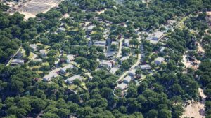 Villas, pareados y plurifamiliares se integran con el paisaje, respetando el pinar y realzando su belleza. Aquí, vivir es hacerlo en armonía con el entorno, entre senderos, dunas y marismas, a pasos de una extensa playa de arena fina.